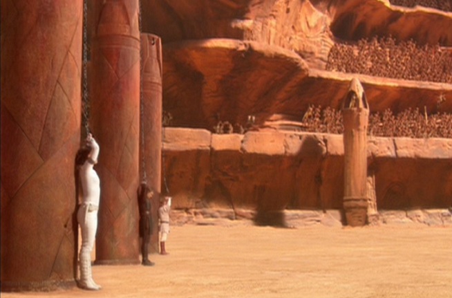 Even better than Shmi’s death scene is Anakin’s reaction to it. He casually leaves the tent and proceeds to slaughter all the Sand People in the village who he feels are responsible for his mother’s death. And that leads to my favorite scene in Attack of the Clones.