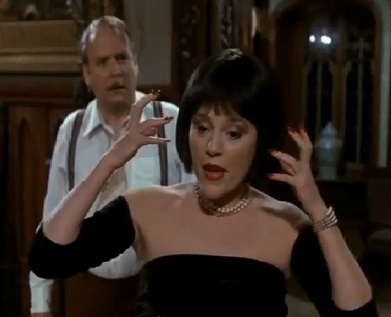 When Tim Curry, Christopher Lloyd and Madeline Kahn are in the same room, I’d definitely call that a party. These and the other actors feed off each other perfectly in this film. I especially love when Wadsworth is going through all of the night’s events, and he repeats the moment when Mr. Green slaps Mrs. Peacock. Then, imitating Mr. Green’s nasal voice, he says, “Well, I had to stop her screaming.” He even touches the bridge of his nose, even though he’s not wearing glasses, and Mr. Green does the same thing at that moment. For some reason that cracks me up every time.