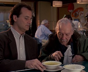 Groundhog Day’s heart comes a little earlier. Day after day, Phil passes by an old homeless man without paying much attention to him. But one night he sees the old man struggling for breath, and he has compassion for him. Phil is shocked to learn that no matter what he does, even if he devotes the whole day to helping this man, the man dies. There’s nothing he can do. This is the key turning point in Phil’s life. Up to this point he’s been focused on himself because that’s all he cares about. He has used people, stolen from a bank, and done things to better his situation. He has even started to believe he’s God because he can’t die, and he knows everything about everyone and can predict the future with perfect accuracy. But in this instance, he’s powerless. He realizes he can’t fight death, and all he can do is accept it as part of life and try to make people as comfortable as possible when they are facing it. With this in mind, he sets out to do something he’s never done before: spend a whole day helping others.