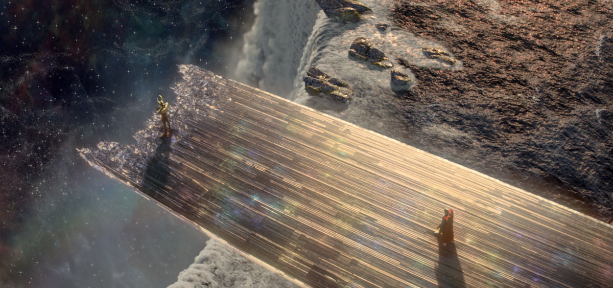 The hero returns to his home filled with power and authority to take down the villain. Thor sacrifices himself for his friends, which somehow makes him worthy to lift his hammer again… which brings him back to life and returns his power to him. All of this happens way too conveniently. Thor doesn’t really change all that much, or at least we don’t get to see what made him change. That was a real missed opportunity. Anyway, armed with his hammer and his big flowing cape, Thor returns to Asgard to do battle with Loki.