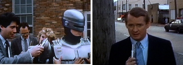In the first Media Break, we learn that a police officer is in critical condition after a gun battle with Clarence Boddicker. Plus, OCP Senior President Dick Jones says of the cops who are threatening to strike, “If you can’t stand the heat, get out of the kitchen.” In the final Media Break, which was deleted from the final cut of the film, Officer Anne Lewis is shown to be recovering after a gun battle with Boddicker. She repeats Jones’ line from her hospital bed.