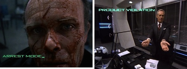 The turning point of the movie is when RoboCop arrests Boddicker. Up ‘til then, he’s been indestructible and able to handle anything that comes his way. But after throwing Boddicker through several glass windows, RoboCop is about to crush his throat when he’s reminded that he’s a cop. His programming takes over and denies him the ability to kill Boddicker. He arrests the criminal instead. Then, when RoboCop confronts Jones, he’s prevented from arresting him by his programming. And RoboCop gets knocked through several glass doors/windows by ED-209.