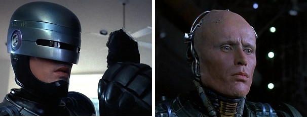 Murphy’s helmet is removed and is killed, losing his humanity. Later Robo removes his helmet to reveal Murphy, regaining his humanity