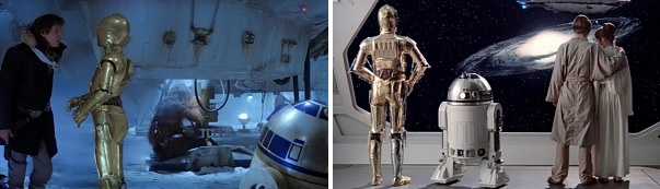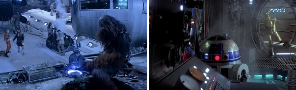When Han returns to the Rebel base, Chewie howls at him for help with repairing the badly damaged Millennium Falcon. Han promises, “I’ll come right back and give you a hand.” Later, at a critical moment, Artoo repairs the Millennium Falcon’s hyperdrive while Threepio complains, “You don’t know how to fix the hyperdrive. Chewbacca can do it!”