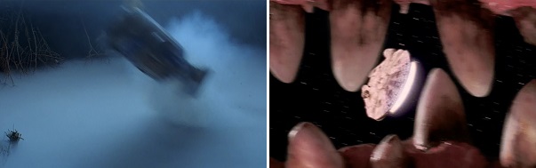 After arriving on Dagobah, Artoo is quickly eaten by a swamp creature and then vomited up because he didn’t taste good to the creature. A while after hiding in an asteroid the crew of the Millennium Falcon realizes they’re actually inside a space slug, and they propel out of its mouth because they don’t want to be its next meal.