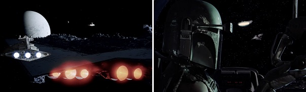 The Imperial Fleet comes out of light speed too close to the Hoth system, alerting the Rebels to their presence. The Rebels are able to protect themselves and escape as a result. Later, just after the Imperial Fleet goes to light speed and unwittingly leaves the Millennium Falcon behind, the Rebels aboard don’t notice they’re being followed by Boba Fett’s ship. They’re unable to protect themselves and fail to escape as a result.