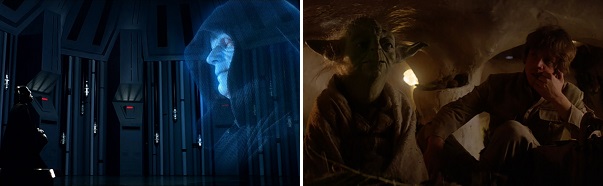 The turning point of the film comes when Vader talks with his master, the Emperor. This is the first time we see the Emperor. He tells Vader, “The son of Skywalker must not become a Jedi.” But Luke could prove a valuable asset if he could be turned to the Dark Side. Immediately after that scene, we see Luke talking with the creature on Dagobah who reveals himself to be the Jedi Master Yoda. He talks to Luke about his father, who was a powerful Jedi, and then tries to think of reasons not to train Luke as a Jedi. He is persuaded otherwise, but only if Luke will finish what he begins.