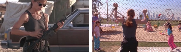 Sarah sees her son and the Terminator bonding, and suddenly we get her perspective on what’s happening. She sees the Terminator as the best kind of father for John, comparing him to all of the others who had come before and had failed to measure up.