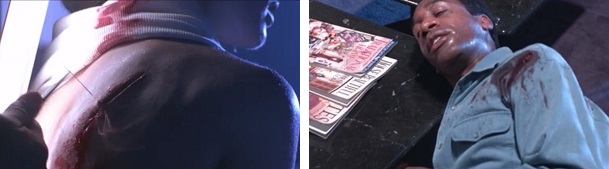 Sarah gets a shoulder wound stitched up and later shoots Miles Dyson in the shoulder.