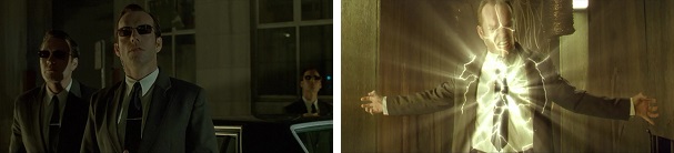 Neo gets revenge by riddling the agents’ bodies full of bullets, enabling Morpheus to free himself from their imprisonment.