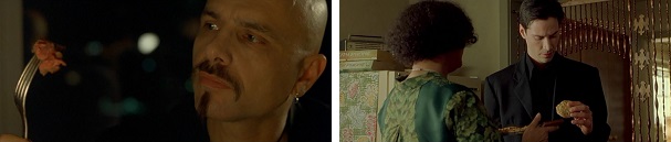 W. Mouse talks to Neo about false food tastes generated by the Matrix