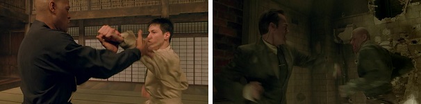 Morpheus fights Agent Smith, and he doesn’t stand a chance the whole way through.