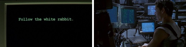 Trinity sends a message to Neo, who is a prisoner inside the Matrix, and tells him where to find her.