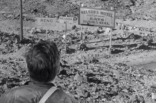 In the classic episode “I Shot an Arrow Into the Air,” the three surviving astronauts of a rocket launch wander through a desert on what they assume is an asteroid. Distrust and murders ensue until only one man survives long enough to learn that they never left Earth’s atmosphere. He breaks down in tears as he gazes upon telephone poles and a road sign for Reno, Nevada.