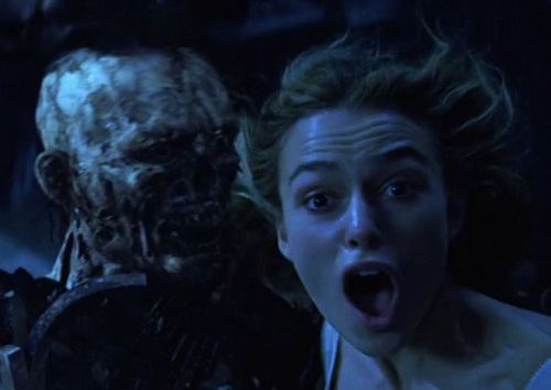 Sparrow believes in the ancient Aztec curse immediately after his first encounter with one of his former crew members. Elizabeth, however, takes a little more persuasion. She doesn’t believe the ghost story Barbossa weaves as he tries to explain the curse to her. She has to see the undead pirates for herself in all their horrific detail to finally believe that she is actually in a ghost story.