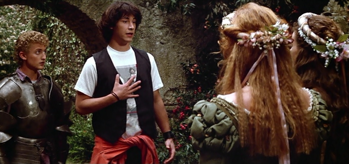 Romance doesn’t seem like it should be the highest priority for Bill and Ted at the outset of their adventure. But Ted tells himself to keep an eye out for a couple of princesses, so he has love in the back of his mind.