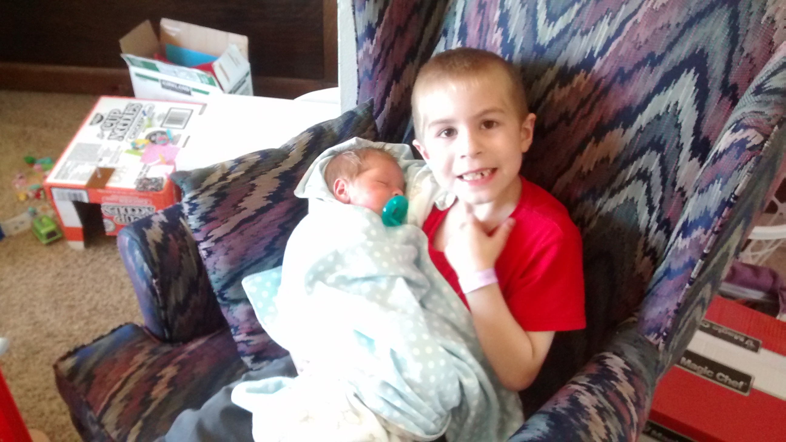 Here he is just moments after he arrived home with his big brothers and mom (sans his sister who was busy elsewhere at the moment).