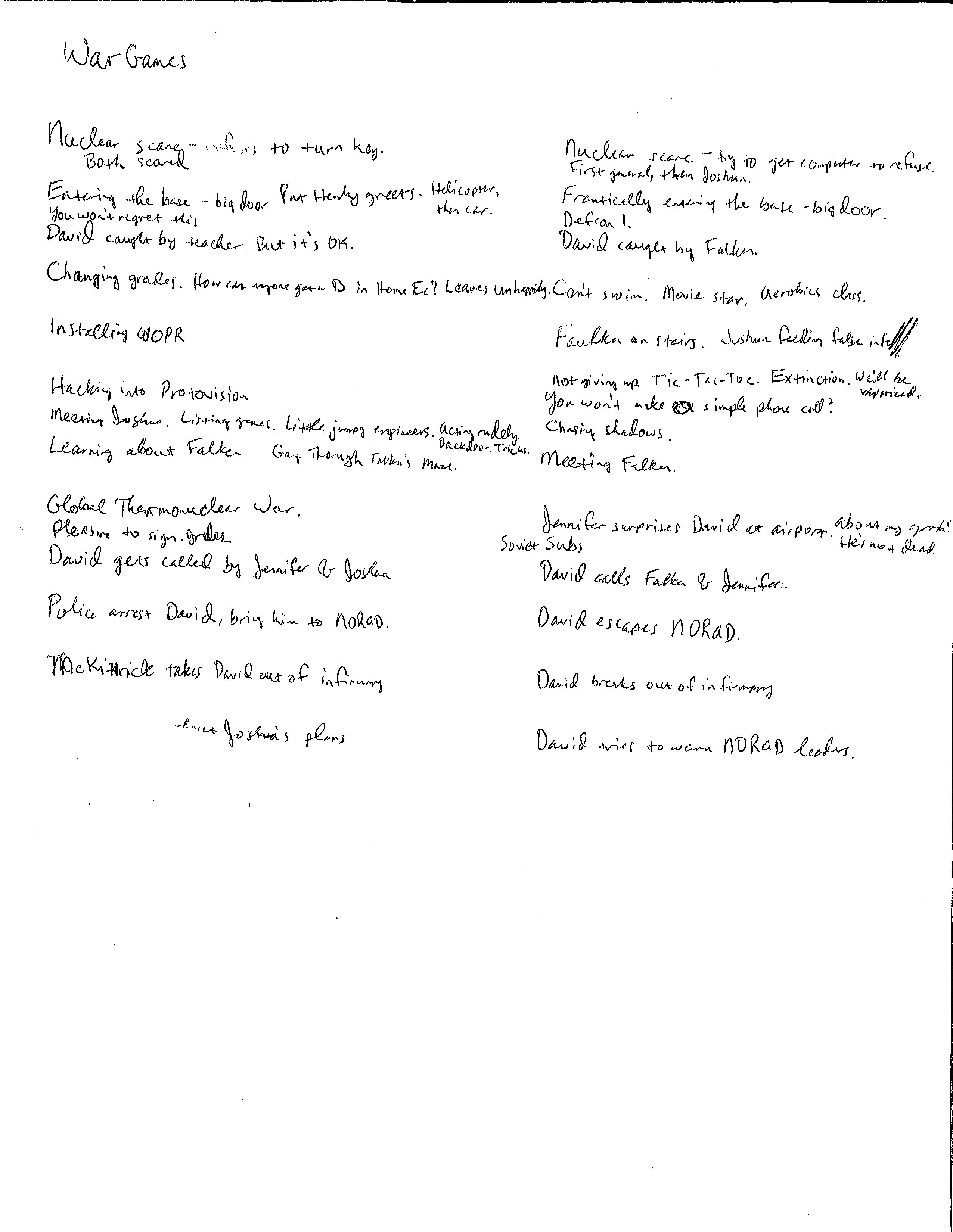 WarGames needed a bit of work to finesse into its final form, but I was pleased with it. By the way, the bottom left corner of the page had been torn off, so part of the text is missing. It should say, “David learns about Joshua’s plans.”
