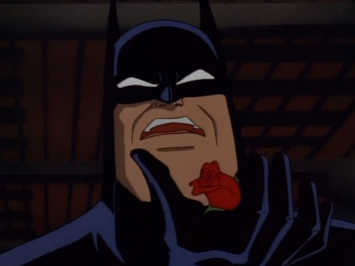 The episode begins with an image that has been forever etched into my brain. We see Batman sitting slumped down on what looks like a throne deep in the Batcave. He looks utterly dejected and inconsolable. Batman has always been a stern, serious character in my mind, but I had never seen him actually look depressed before.