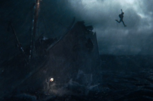 Lara Croft abandons a sinking ship.As Lara approaches the island her father went to years ago, a storm erupts and sinks her ship. She barely manages to grab Richard’s notes before she is thrown off the sinking ship and washes ashore. This is reminiscent of the scene where Indy tracks down an old artifact he’s been pursuing for years on a ship in the middle of a storm. He manages to jump off the boat right before it explodes, and he is rescued by a stray ring buoy.