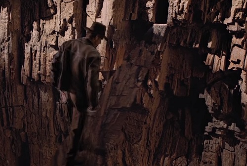 Indiana Jones takes a leap of faith.Lara must cross a rather unstable makeshift bridge across the Chasm of Souls. She hesitates, but she ultimately makes it across. Indy has to take a leap of faith from the lion’s head onto an invisible bridge to reach the Grail. He summons all his courage and makes it across.