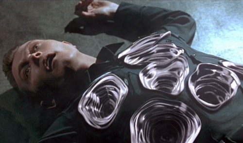 I hope it’s clear that I’m being a little facetious here. I’m simply using my powers of judgment to find Austin Powers in Judgment Day. Terminator 2 doesn’t have its heroes go to the moon or use a deus ex machina time machine at the climax to do things over again. There are no silly scene transitions with the Terminator dancing around to groovy music, nor is there a scene where Sarah Connor seduces one of the T-1000’s morbidly obese henchmen.