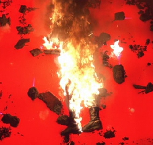 After making a guard fall into a pit of liquid hot magma, Austin quips, “What a burn,” “That sort of thing could get a man fired,” and “I think he was hot for you,” before Felicity tells him that that’s enough.