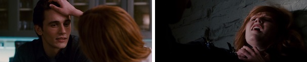 MJ runs to a mortally wounded Harry and cradles his head in her hands. She offers to go get help, but he begs her to stay with him because he doesn’t want to be alone as he dies.