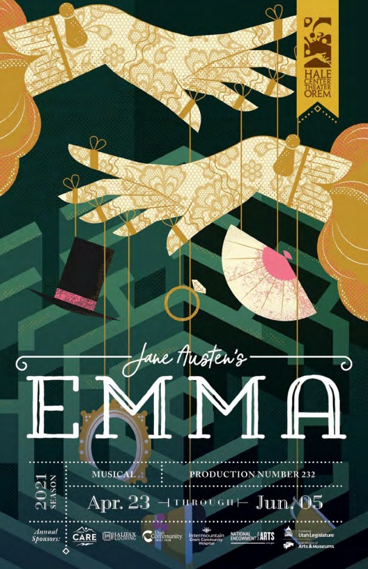 My wife was excited to hear that this month Erica would begin playing the lead role in a musical adaptation of Jane Austen’s classic novel Emma in the Hale Center Theater Orem (HCTO) just a mile or so from our home. We bought tickets to see it opening night last Monday, and I must say it did not disappoint. I’d like to share the biggest impressions the play made on me. It turns out to be an appropriate time to discuss this play because a 2020 film adaptation of Emma was nominated for two Oscars (Best Makeup and Costumes), and SportsBettingDime gave it a 45% chance of winning the latter category, though it lost to another film I know nothing about. Funny coincidence.