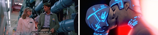 Yori expresses her fear about Flynn dying when he says he plans to jump into the MCP’s beam for Tron’s sake. Flynn then kisses Yori passionately, probably because she reminds him of Lora.