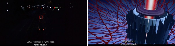 Realizing that Flynn is in danger, Lora pleads with Alan to go with her to Flynn’s and warn him about what Dillinger and the MCP are doing. He relents, and they go.