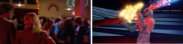The first thing we see in the real world is an establishing shot of an arcade called Flynn’s. Within the arcade, a young man begins playing a game called “Lightcycle.” But he doesn’t realize that two living programs are inside the game fighting for survival. Sark is the computer, and he easily defeats his opponent and then gloats over his victory with the Master Control Program.