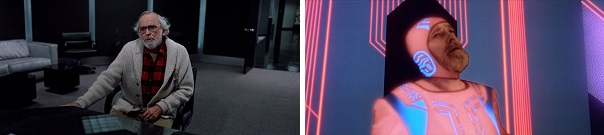 In Dillinger’s office, he and Walter engage in what Dillinger terms a religious discussion about the purpose of programs. Walter thinks it’s to help users, but Dillinger says it’s to do their business. When Walter laments what ENCOM has become, Dillinger basically says he’s fired.