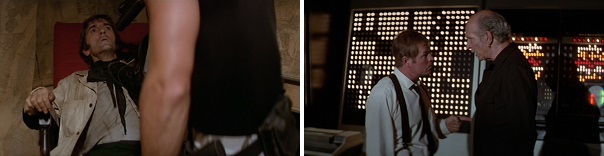 I find it amazing that Escape from New York is a few minutes longer than Tron, but its chiasmus is nearly half the size of that film’s. Escape from New York is a film that takes its time to let the events unfold. It’s not in a particular hurry to get from plot point to plot point. While Tron crammed in tons of critical information in every scene, Escape from New York frontloads itself with plot information and setup, and then it is just kind of content to mosey on down to the finish line.