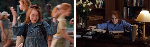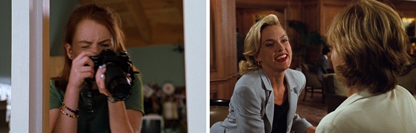 Late at night, Annie and Hallie lie down next to each other in bed and talk about the fact that their parents never remarried. Hallie suggests they switch places to get to know their estranged parents better. They’ll trick their parents into getting back together when they reveal that they’re not who their parents thought they were. So they spend weeks changing their appearance and mannerisms to be impossible to tell apart.