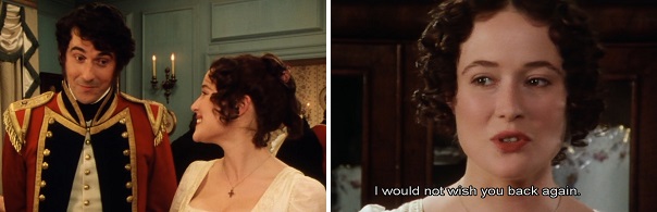 In her sitting-room, Mrs. Bennet complains about the regiment leaving Meryton. Wickham patiently listens, and then he seeks out Elizabeth to say goodbye. She says she’ll soon vacation with the Gardiners, and he asks her about her time at Rosings Park. Elizabeth lays her cards on the table when she says that Darcy improves on closer acquaintance. Elizabeth is happy when Wickham is called away. She privately says she wouldn’t wish him back again, though the next time she sees him he’ll be married to her youngest sister.