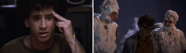 A nerd keeps getting shocked by Dr. Peter Venkman during the Milligram Experiment, even when he gets the right answer. He storms off after he’s had enough, saying that Venkman can keep the five dollars he was promised.