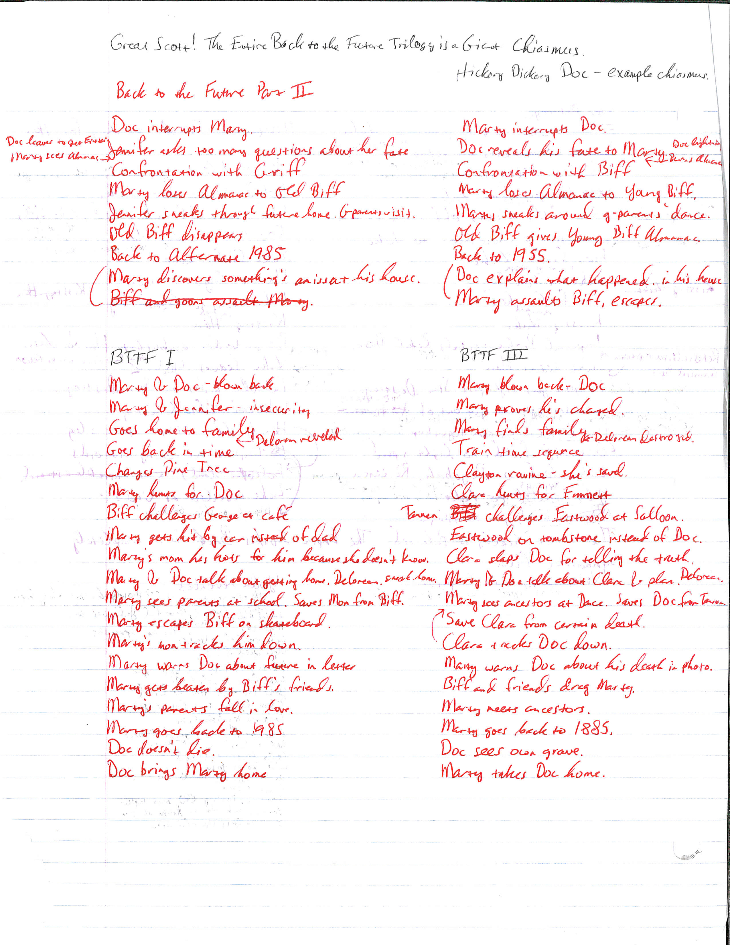 1. Drafting the Back to the Future chiasmus (aka: step one).Watch a film and summarize its events to find the chiasmus.