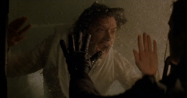 When Angier first gets the machine from Tesla, he tests it on himself. He inadvertently creates a perfect clone of himself standing a few yards away, and the Angier standing in the machine shoots and kills the man who seemingly just appeared out of nowhere. But is that what really happened? Was it Angier who shot his clone, or the clone who shot Angier? We’ll address that in a moment.