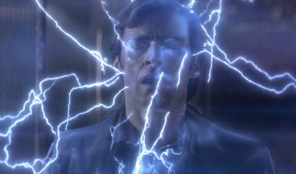 Huge spoiler alert if you haven’t seen The Prestige. It’s about two rival magicians (Alfred Borden played by Christian Bale and Robert Angier played by Hugh Jackman) who go to incredible lengths to sabotage and one-up each other. Angier hates Borden for accidentally making his wife die by drowning during a magic act. They physically attack each other on many occasions in an effort to figure out each other’s secrets. The biggest thing they each want to know is how the other man does The Transported Man magic trick. You see, late in the film, Angier obtains a machine from Nikola Tesla that produces a double of him.
