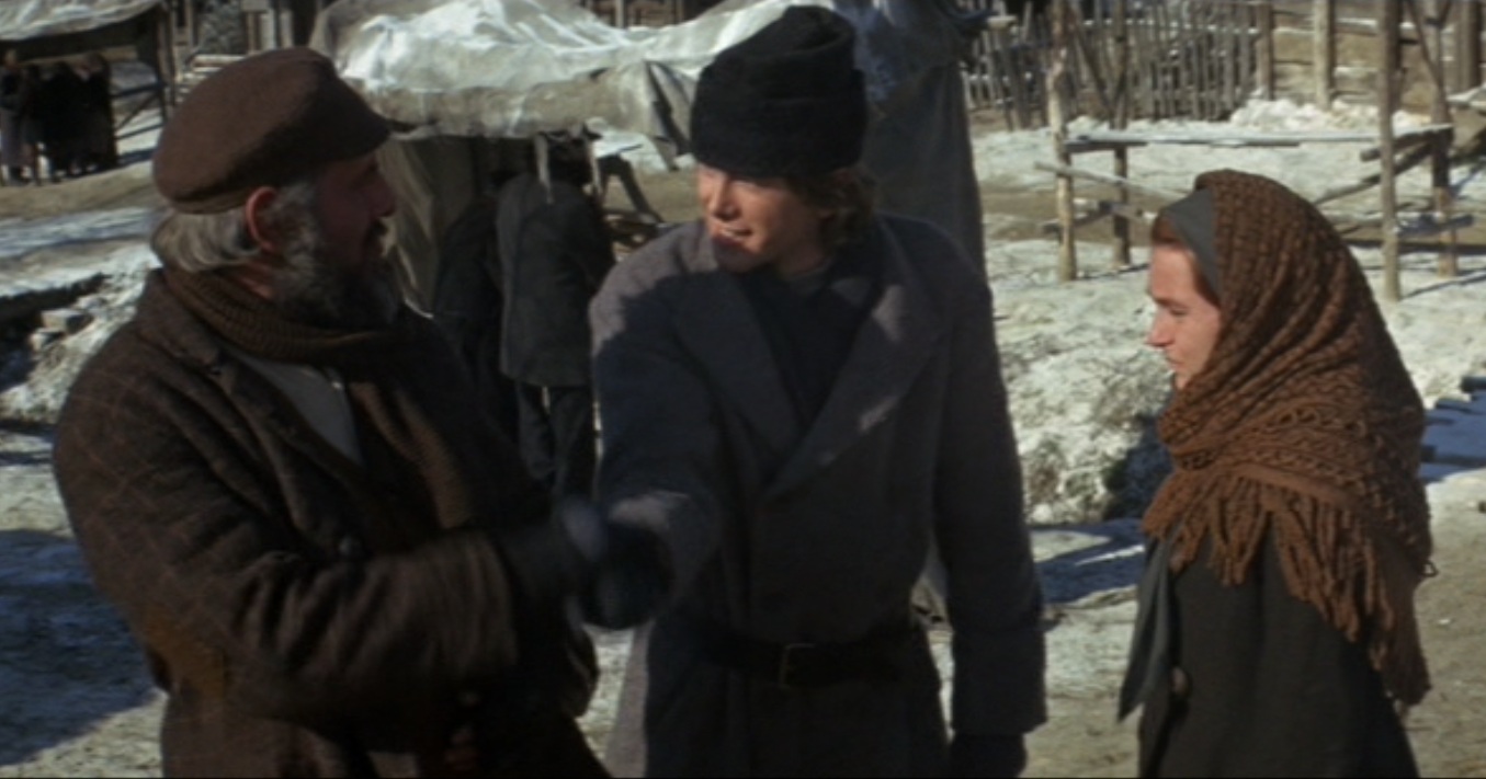 Chava meets Fyedka, after he gets the other young Russian men to leave her alone. Even when she tries to leave and doesn’t want to talk to him, he gives a book to her, and they discuss the differences in who they are, and plan to meet again when she finishes the book.