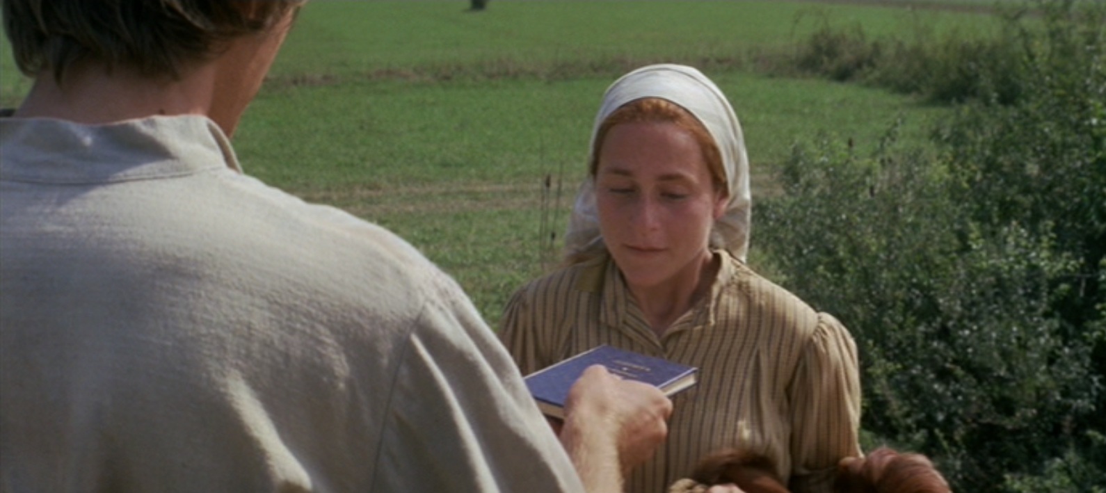 V. After Hodel accepts Perchik’s offer of marriage, they happily hold hands and walk across a field.