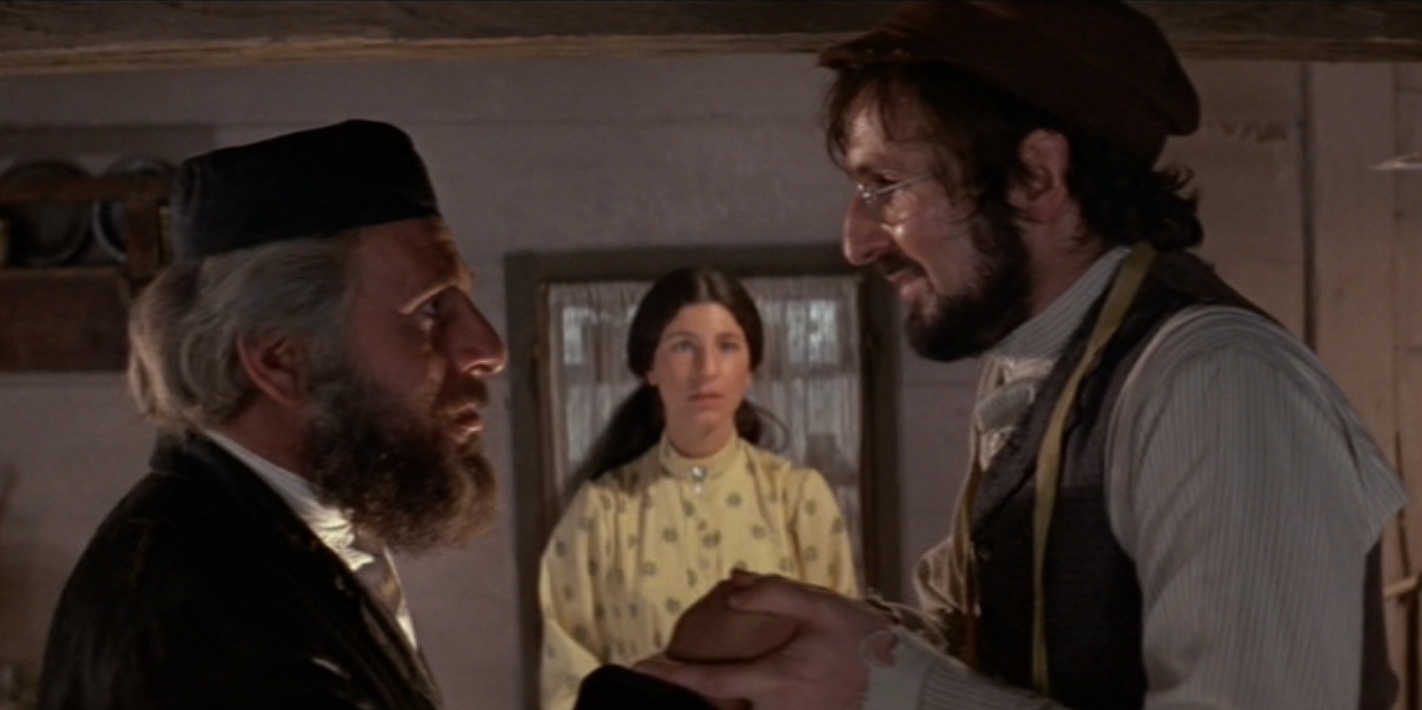 F. Lazar Wolf stops by to say goodbye to Tevye. They hug each other and leave on good terms, despite their earlier disagreement over Tzeitel’s marriage.