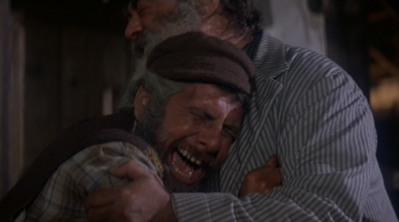 Local Russian men sing in congratulations to the Jews, and they put Tevye into a dilemma when they offer to dance with him and he has to choose. Despite the head shakes from his friends, Tevye accepts the offer. When the dancing and drinks are done, Tevye and Lazar Wolf embrace and say goodbye, laughing over the fact that they’ll soon be family.