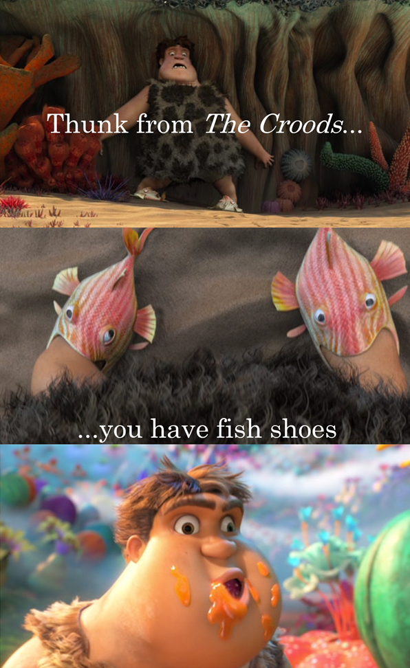 Time for some fun. I had a silly thought about Thunk in The Croods, which I then put together into this little graphic. Enjoy!